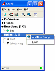 To start you off, four groups are already available for you to use: Co-Workers, Friends, New-Users and Offline. You can change or delete all of these groups, except for “Offline”.