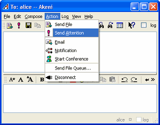 - In the chat or conference window, select “Action -> Send Attention”.