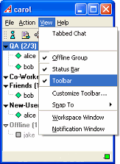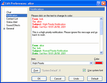Alerts of user status, chat and conference requests, etc. will appear on your system. You can change the options so that the alert will only appear for specific options.